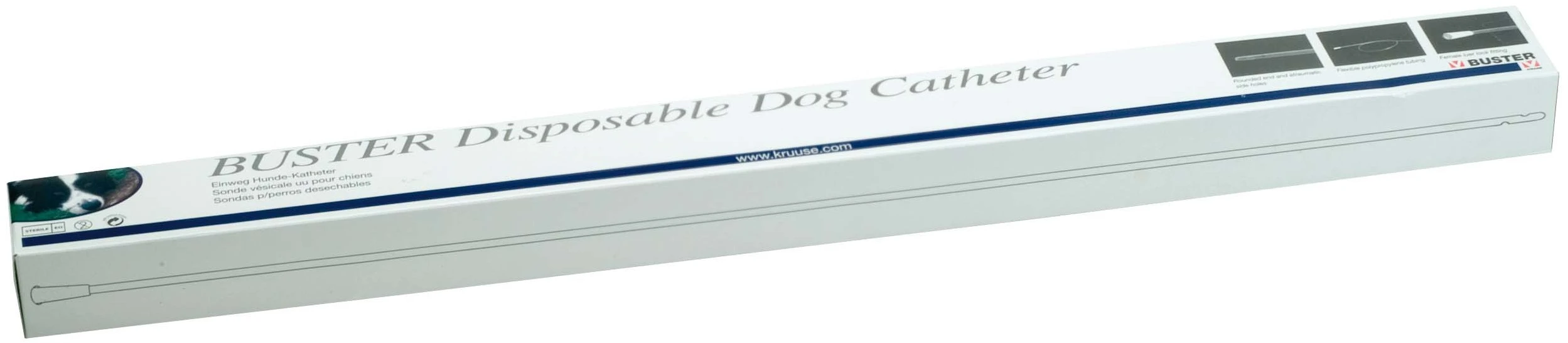 BUSTER стерильный катетер для собак предназначен для катетеризации при мочекаменной болезни и в других случаях затруднения отхождения мочи по мочевыводящим путям. Изготовлен из полиэтилена низкой плотности (LDPE).
